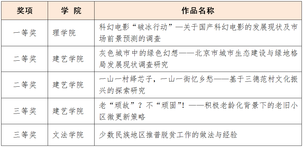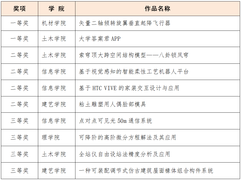 按照《关于组织开展2019年“挑战杯”大学生课外学术科技作品校内竞赛的通知》,经过学院初赛、学校复赛评审,校团委于2019年4月29日下午组织进行了决赛,35个入围作品参加了决赛答辩。经过评审专家团公平、公开、公正的答辩评审,共有3件作品获得一等奖、6件作品获得二等奖、6件作品获得三等奖。全部15件获奖作品将有资格参加第十届“挑战杯”首都大学生课外学术科技作品竞赛。