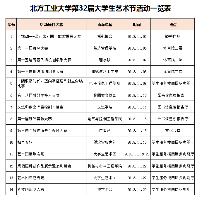 附件:《yl7703永利集团第32届大学生艺术节活动一览表》
