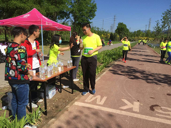 本次活动起终点设在火车餐厅广场,采用绕湖跑的路线设计,途中设有医疗补给站和击鼓助阵站,为赛事提供充足的后勤保障,给参赛选手加油鼓劲。本次活动采用裁判员计时法,按号码牌颜色分组开跑,最终记录男子、女子前五名。在跑步过程中,长期坚持跑步的选手争分夺秒,力求再一次超越自我;跑步经验较少的选手也拼尽全力坚持全程;每一句加油,每一声呐喊都承载着所有参赛者美好心愿——为爱而跑!