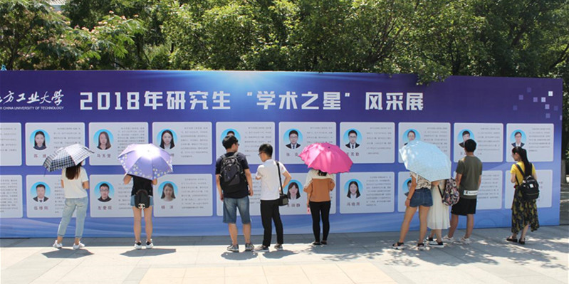 评选结束后,对获得此次“学术之星”的同学在毓秀广场进行了风采展示,并在校研究生会官方微信公众号平台上进行了21期“研途忆彩,工大同行”学术之星个人风采展示的系列专题推送。