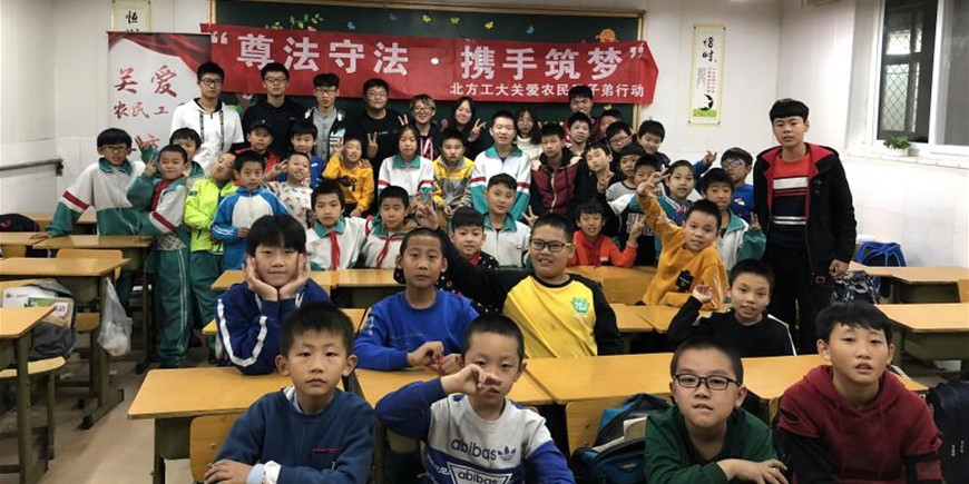 为了贯彻落实关于中华全国总工会、教育部关于2018年服务农民工法制宣传行动的安排,yl7703永利集团组织学生志愿者于10月17日赴石景山区华奥学校开展了以“尊法守法·携手筑梦”为主题的关爱农民工子弟活动。活动主要以讲课与互动拓展游戏的形式开展,志愿者们为留校住宿的三个班学生上了一堂生动的科技实践课。