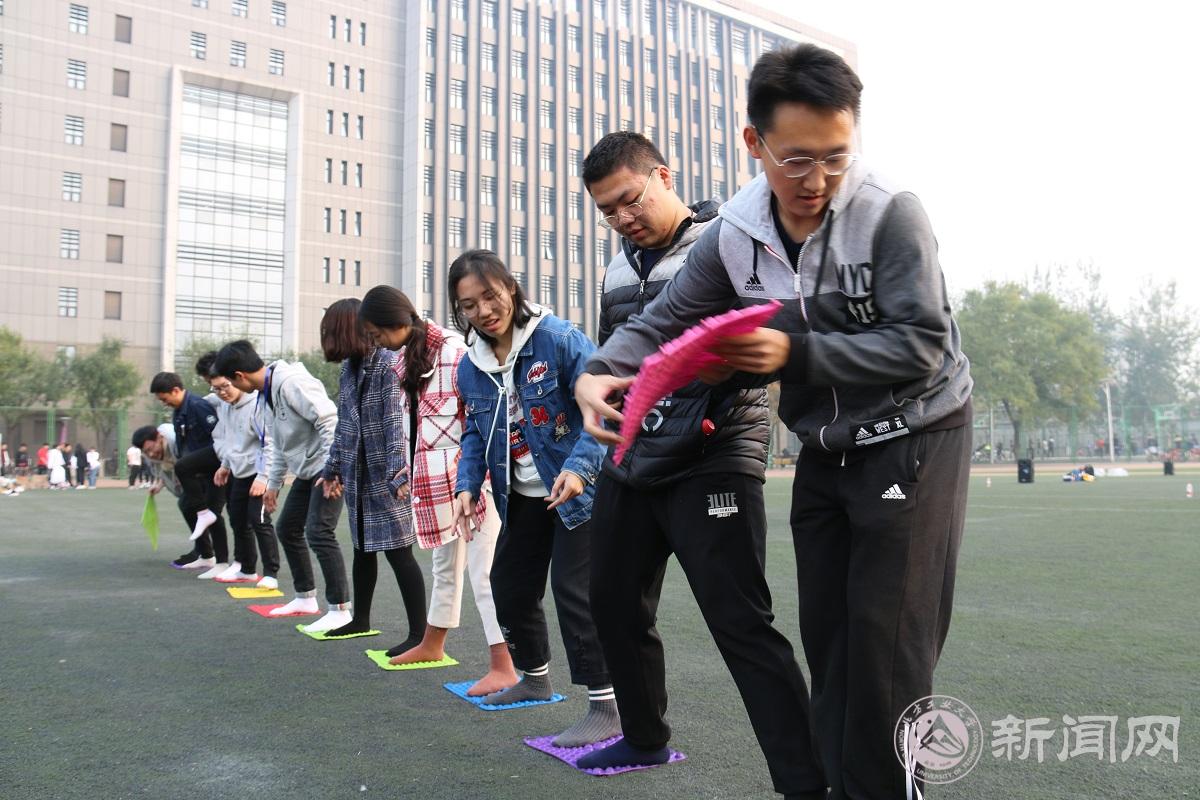 下午全体成员分为10个小组进行了素质拓展活动,小组成员各显身手、团结一致完成了“信息传递”、“爱的抱抱”、“同舟共济”等项目,通过这些趣味游戏,同学们之间不仅增强了友谊,更意识到了团队精神的重要性。