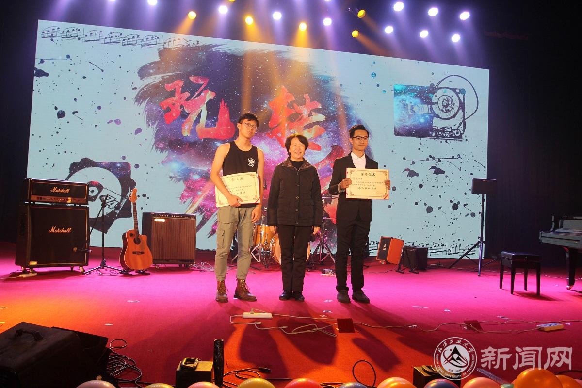 >让观众们从纯音乐中听出千言万语。评委老师李丹丹的扬琴表演,极具古典特色,让观众们如痴如醉。“使命存,致远方”团体组的比赛,涡轮乐队、主旋律乐队、失衡相位乐队、哒啦啦蹦人声乐团、绿油油的太阳乐队唱响了青春的声音,用旋律表达了对主题的理解和诠释。在我校励学楼工作6年、最受同学们欢迎的嘉宾“二教大叔”表演一曲《花房姑娘》后,“绘蓝图,展新章”个人组和团体组晋级选手展开第二轮激烈角逐,有经典曲目《加州旅馆》,有激情Rap《午夜杂谈》,有火爆全网的《大鱼》……给全场观众带来了一场高质量的视听盛宴。最终,韩钰和失衡相位乐队凭借自己高超的音乐水平分别获得单人组和团体组冠军。校党委副书记田红芳、校团委书记何有华、学工部副部长赵帅为获奖选手颁奖。