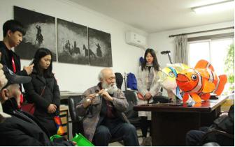 走进王建民老师的工作室,工作室里陈列着许多杂技表演道具,为了让大家更好的了解这些道具,工作人员现场操控道具做出各种模拟人的动作,引起现场同学们的阵阵惊叹。随后王老师用凭借几段塑料圆管,现场自制乐器为到访的众人演奏了许多耳熟能详的曲目。参观过程中,王老师结合自己的人生经历,告诉同学们发明创新不能仅凭兴趣,更重要的是要有钻研的毅力和坚持到底的韧劲。