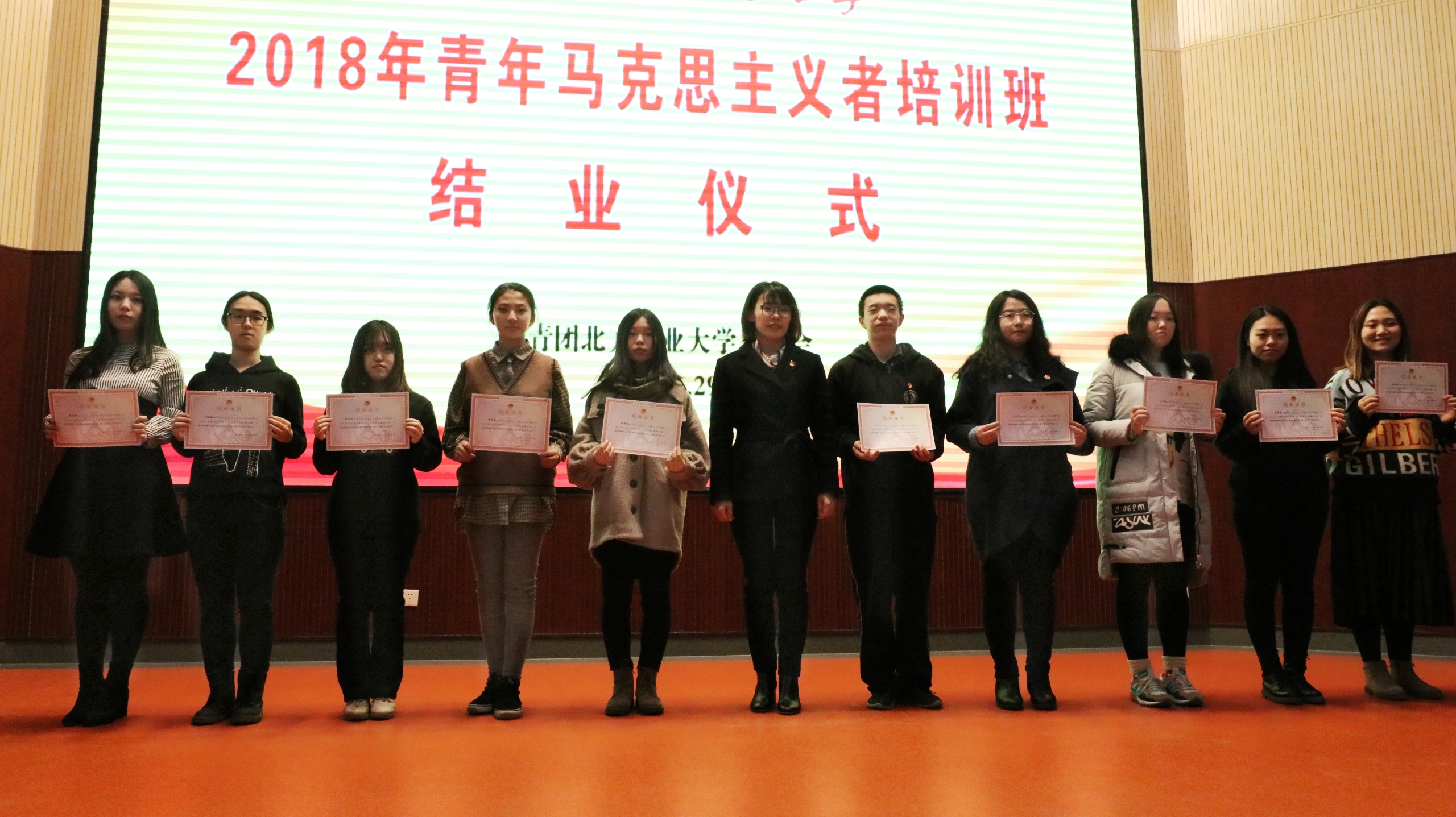11月29日下午,我校2018年青年马克思主义者培训班结业仪式在文化会堂顺利举行。结业仪式由青马班学员闫思宇主持。校团委书记何有华、副书记陈国秀出席结业仪式。
