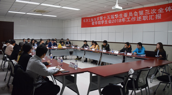 2018年12月27日下午,第十五届学生委员会第三次全体会议暨学院学生会2018年工作述职汇报在学生服务楼318召开。会议由校团委副书记、学生会秘书长陈国秀老师主持。