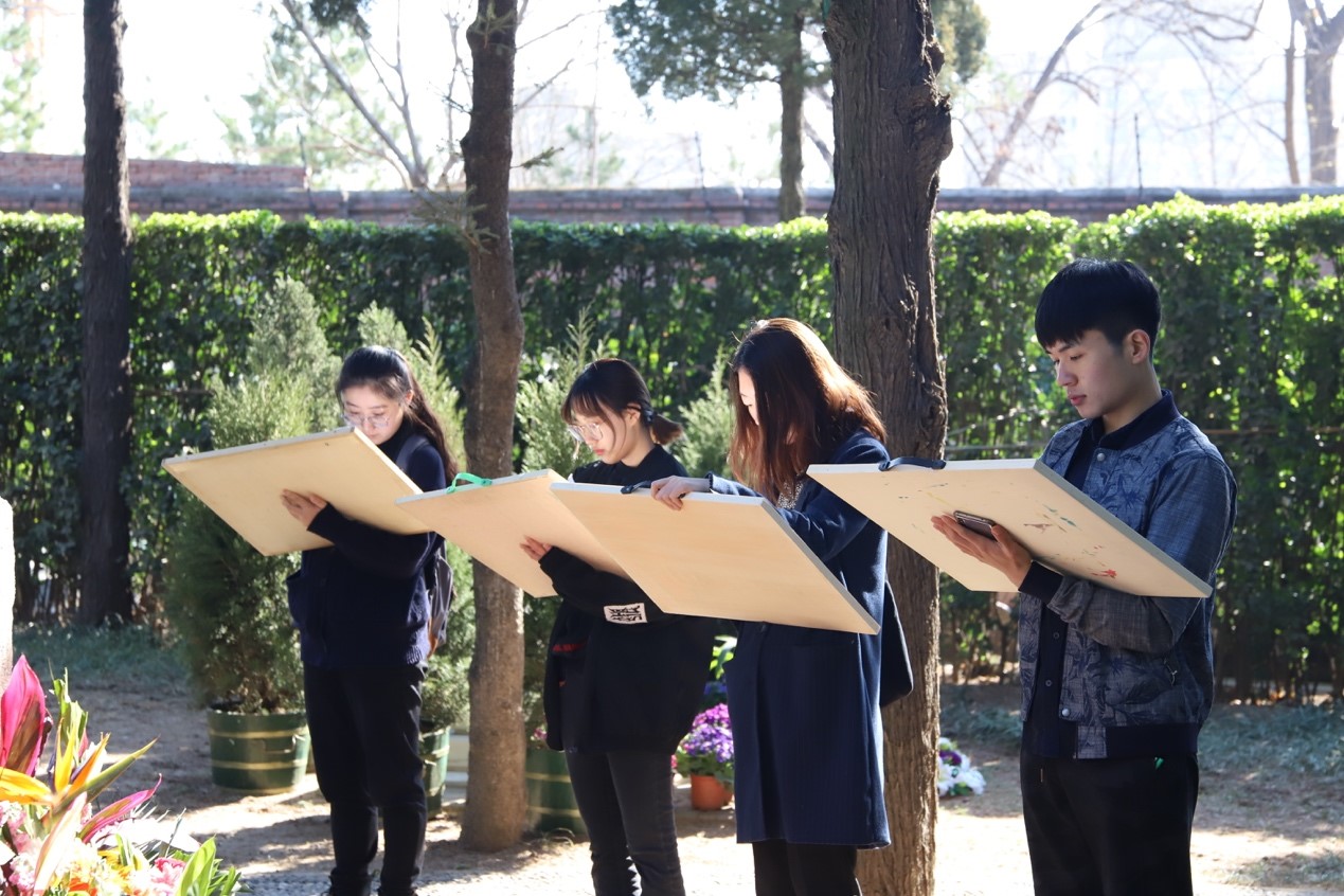 活动首先由艺术团同学进行朗诵——《我的祖辈》开场,在深情的朗诵中向先辈致敬。随后,管弦分团一曲小提琴与大提琴的合奏《燃情岁月》,通过悠扬的乐声带领大家重温过去,并由编导传媒中心的同学绘画相关主题作品,一笔一画中流露出对先辈的崇敬。祭扫活动结束后,艺术团同学及老师一同前往无名碑前献上菊花,表达对革命先烈的哀思。