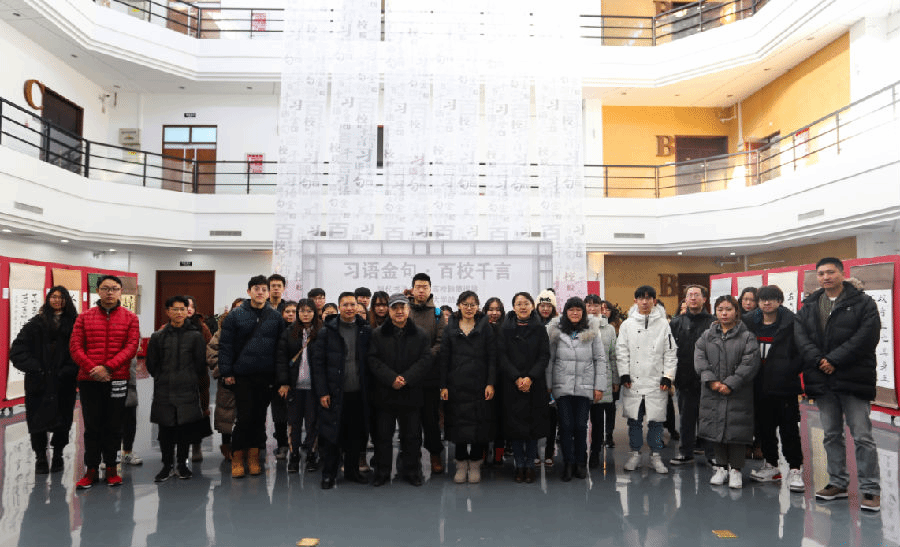 12月27日上午,由共青团中央学校部主办的“习语金句·百校千言”书法展(yl7703永利集团站)在校史馆展览大厅开幕,校团委书记何有华、副书记陈国秀,建筑与艺术学院党委副书记杨超,校教师书画协会会长吴润衡及相关部门的教师、学生代表参加开幕仪式。我校的展览活动结合正在开展的“青年大学习”行动开展,旨在进一步推动习近平新时代中国特色社会主义思想在广大青年中入耳入心入脑,引导广大青年不忘初心、牢记使命,切实增强“四个意识”、坚定“四个自信”。