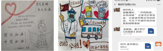 马克思主义学院召开特殊的团支部会议,积极开展线上爱心主题活动,动员全体学生通过录制视频、手写祝福、原创绘画等方式为武汉祈福,为祖国加油,向坚守在战“疫”、防疫一线的最美“逆行者”致敬,向奋斗在战“疫”前线的无名英雄致敬。