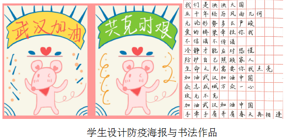 学院开展“建艺青年手写祝福接力”活动,在学院微信公众号上开设“浩学库”为学生提供专业学习资源。号召学生党员和积极分子踊跃投身城市社区、乡镇农村疫情防控志愿服务工作,在家庭属地社区、街道经过线上培训后,积极参与社区疫情防控知识宣传普及,向群众做好政策措施解释,协助做好疫情信息收集、报告、人员隔离、秩序维护等工作,用实际行动践行初心使命。组织学生利用专业优势,设计宣传抗疫海报,传递众志成城、共克时艰的必胜信念。