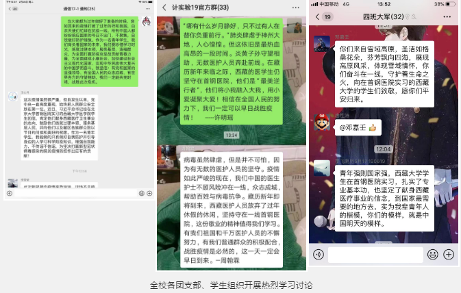 校团委第一时间组织我校团员青年认真学习习近平总书记回信精神,凝聚青春力量。通过线上集体学习、小组讨论认真理解领会总书记的要求和期望,用实际行动助力抗疫总体战和阻击战。