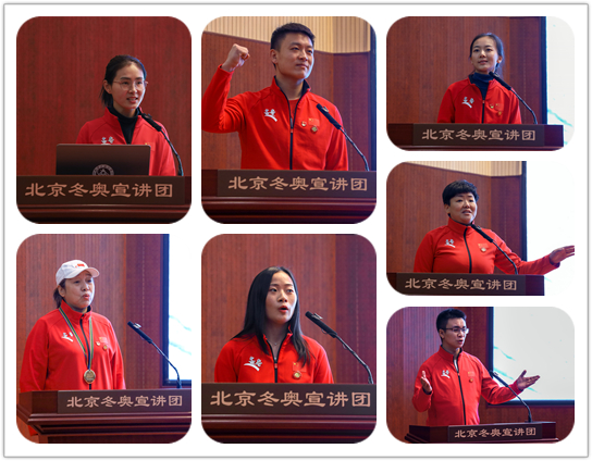 宣讲员们用平实的语言、生动的事例、真挚的情感,为现场师生带来了一场感人至深、催人奋进的宣讲报告。北京冬奥组委新闻宣传部工作人员许丹丹首先介绍了2022年冬奥会和冬残奥会筹办工作整体情况。随后6名宣讲员依次讲述了他们与奥运的故事。北京体育大学学生郭露阳讲述了他参加平昌冬奥会闭幕式“北京8分钟”表演的艰苦训练过程及精彩表演;北京冬奥组委工作人员刘晨分享了她在里约奥运会当语言翻译志愿者的难忘经历;北京东城区回民小学教师郝涛介绍了东四奥林匹克社区开展全民健身、积极参与奥运的故事;奥林匹克文化推广人侯琨介绍了他走遍全球所有奥运城市、宣传奥运文化的深刻感受;高山滑雪运动员、冰雪小将张丁月讲述了她心怀热爱、为了实现冬奥梦越战越勇的励志故事;第九届残奥会冠军刘玉坤讲述了她克服各种艰苦挑战,在奥运赛场上奋战30年屡夺金牌的感人故事。宣讲员们勇于拼搏、甘于奉献、执着追梦的精神深深感染了现场的每一位师生,赢得了阵阵掌声,不少师生都流下了感动的泪水。