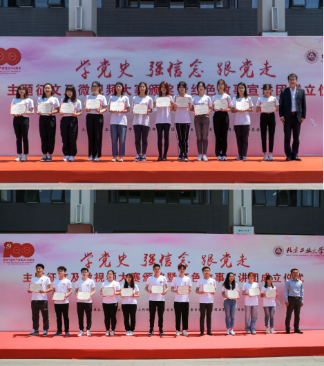 6月1日中午,在即将迎来中国共产党百年华诞之际,学校在毓秀广场隆重举办“学党史、强信念、跟党走”主题征文及微视频大赛颁奖暨红色故事宣讲团成立仪式,进一步推动党史学习教育走深走实。校党委书记缪劲翔、副书记田红芳,石景山团区委书记贾曦、副书记于勇,以及学校相关职能部门负责人,各学院党委副书记、团委书记、学生代表参加活动。