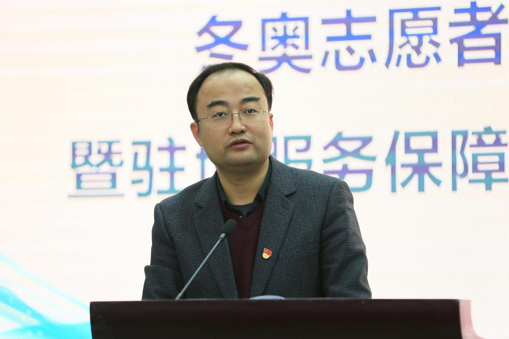 党委书记缪劲翔在大会上讲话。他指出,为迎接冬奥盛会,yl7703永利集团积极作为、冲锋在前,组建了冬奥志愿者、驻地服务保障两个工作专班团队,600多名师生志愿者以高度的责任感和使命感,主动融入冬奥会、冬残奥会服务保障工作,充分展现了北方工大人的青春风采与责任担当。他代表学校党委,向所有参与服务保障北京冬奥会、冬残奥会的全体教职员工和志愿者同学们表示亲切的慰问和衷心的感谢。他强调,今天的大会既是加油鼓劲,也是出征前的再动员。希望大家振奋精神、鼓足干劲,团结协作、共同努力,确保顺利完成冬奥期间各项服务保障工作。他向大家提出三点希望:一是要高站位。全体党员要传承红色基因,团结广大青年,增强中国人的志气、骨气、底气,把爱国情、强国志、报国行融入到服务保障冬奥会的具体行动中。两个专班团队要充分发挥临时党委和临时党支部的政治核心和战斗堡垒作用,发挥冬奥宣讲团的思想引领作用,把服务保障好北京冬奥会当作一堂精彩的党史学习课,把讲述好冰雪故事、传播好奥运精神当作一堂生动的思政教育课。二是要高水平。必须做到“精精益求精、万万无一失”,高水平、高质量完成最后两个多月的服务保障任务,以一流的服务水平、一流的工作业绩向世界展示北方工大师生的风采。三是要高标准。牢记习近平总书记安全办奥运的嘱托,高标准落实各项防疫要求,听从指挥、科学防疫、迎难而上,共同克服疫情带来的挑战和困难,向党和人民交出一份圆满的答卷。