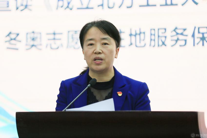 优秀志愿者代表廖珊珊在发言中表示,我们将以蓬勃之姿,接过助力冬奥的火炬,用青春“石”干宣告:冬奥会,我们准备好了!