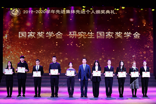校党委书记缪劲翔为国家奖学金、研究生国家奖学金获奖代表颁奖