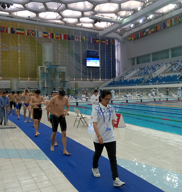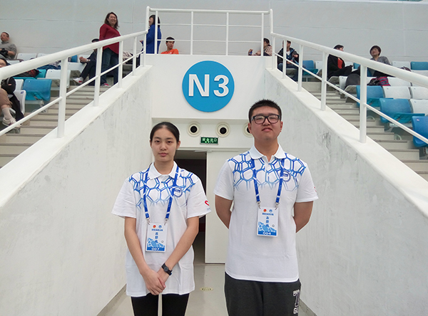 清晨6时许,踏着第一缕阳光,电信学院的志愿者们便早早来到了水立方赛场,开始了一天志愿服务活动的准备工作。志愿者们按照分工,被安排到了不同的岗位上,有的负责协调调度志愿者,有的负责引导参赛选手,有的负责协助赛事裁判工作,有的负责维护观众秩序等。志愿者们坚守各自岗位,认真履行职责,用心提供服务。从早上8点到晚上6点,他们始终保持微笑和热心,为参赛选手和观众提供如春风般温暖的志愿服务。赛后,志愿者们还积极协助主办方做好相关收尾工作,直至晚上7点左右才为此次志愿服务活动画上了圆满的句号。