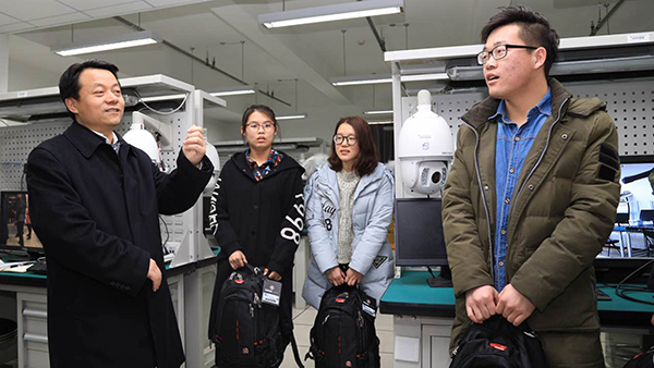 从学生公寓出来,振邦书记一行来到城市道路交通智能控制技术北京市重点实验室,听取了实验室的情况介绍,并亲切慰问正在进行科研实验的同学们。振邦书记对同学们在寒假期间能够留校继续科学研究表示赞赏,希望大家能够在科研道路上越走越高,取得更大的成绩。