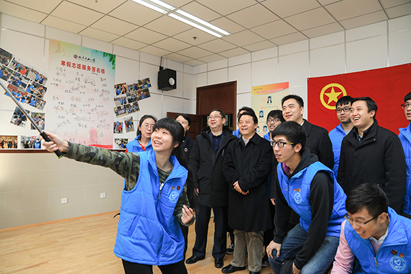 寒假留校的同学们得知振邦书记一行来看望大家,都非常激动,都表示深深感受到了团中央和团市委的温暖和关怀,备受鼓舞。当天下午,学校还专门为寒假留校学生举办新春茶话会,将振邦书记的慰问带给全体学生。