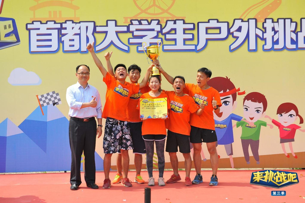 6月11日,“来挑战吧”首都大学生户外挑战邀请赛(第三季)总决赛在北京国际青年营房山营地举行,我校学生代表队在比赛中表现优异,获得总决赛的冠军。我校还获得了本次邀请赛的最高荣誉“挑战者杯”,并且获得“紧急救援”和“团队协作”两个单项奖。在颁奖典礼上,北京团市委书记熊卓为我校代表队颁发了奖杯和证书,校党委副书记田红芳出席了颁奖典礼。