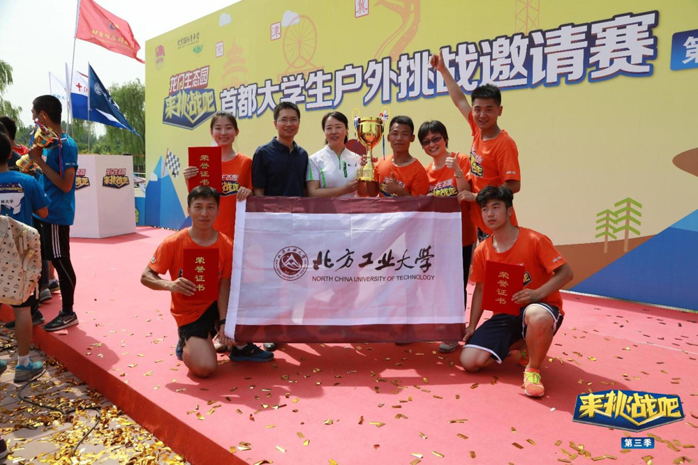 “来挑战吧”首都大学生户外挑战邀请赛(第三季)是团市委举办的大学生“三走”系列活动主体赛事,共有来自清华大学、中国人民公安大学、香港青年联队等京津冀以及香港地区的24支大学生代表队参赛。整个比赛包括高校预选赛、营地小组晋级赛和总决赛三个阶段,采用团体循环赛制,各代表队完成了原始技术、极速前进、紧急救援、团队协作等挑战项目。由来自建筑与艺术学院的徐东胜、邢家祥、马鑫、邱彪,和电子信息工程学院段凯强等5位同学组成的我校代表队凭借坚强的意志、过人的智慧、惊人的速度、拼搏的精神,最终战败了实力强大的公安大学代表队,一举夺取了总决赛的冠军。