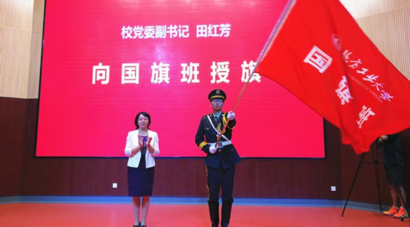 田红芳副书记在讲话中指出国旗班的成立是我校思想政治教育和爱国主义教育工作中的一件大事,是值得纪念的。她用兄弟高校国旗班的生动事例向同学们阐述了学校国旗班这一特殊集体的光荣和职责所在。同时对同学们提出两点希望,一是要勇于坚持,直面各种考验和磨难,用自己的青春和汗水为国旗站岗、为学校增光。二是要甘于奉献,作为第一届国旗班队员要明白自己身上的光荣使命和重大责任,要以实际行动和优异的表现争当“北方工大第一班”、“北方工大第一团支部”。