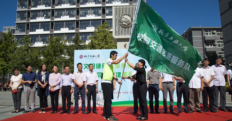 活动中,校党委副书记田红芳为学校文明交通志愿者授旗,并对全校师生发起倡议。她对大家提出三点希望:一是倡导绿色出行135法则,1公里步行,3公里骑行,5公里公交出行,让绿色出行成为习惯。二是做文明交通的实践者、维护者。自觉按照规定停放,爱惜车辆,发现倒地,及时扶起,相互监督,相互约束,及时提醒身边人有序停放车辆。三是要在共享、共用、共护中展现当代大学生的良好素质。维护好、使用好单车及其设施,是每一个使用者必须做到的。