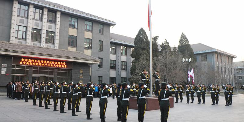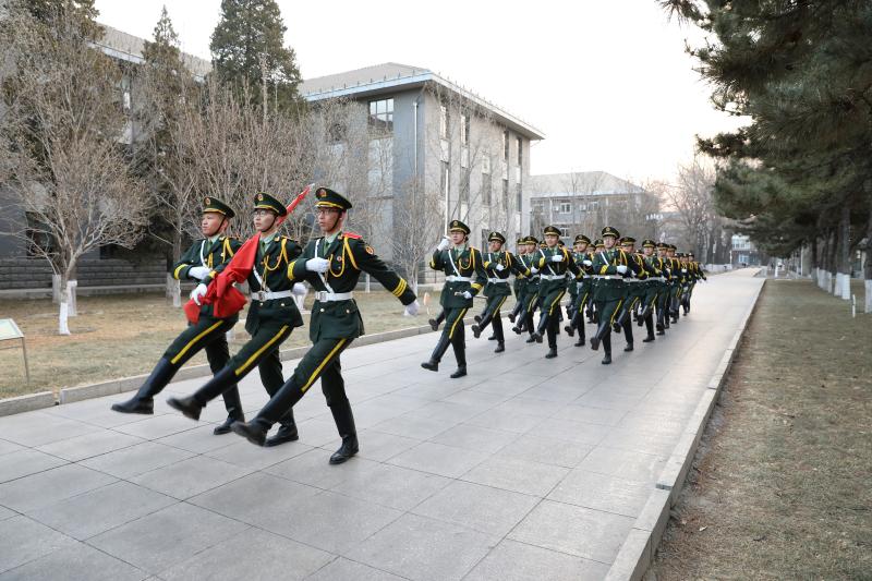 国旗班队员迈着整齐矫健的步伐,护送鲜艳的五星红旗走向升旗台。庄严的国歌响起,全体师生行注目礼,五星红旗在敦品楼前冉冉升起,激励着师生们将心中的爱国激情转化成新学期开启新征程、迎接新挑战、实现新目标的强劲动力。