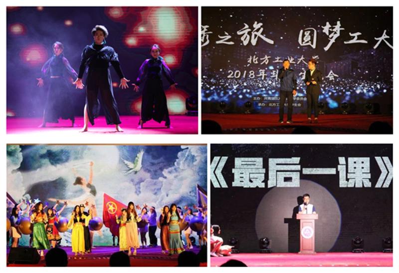 整台晚会在歌曲《我的天空》中拉开序幕,校园情景剧《毓秀之旅》将歌曲串烧和舞台演绎结合,带大家回顾了2014级学生入校后值得回忆的点点滴滴;舞蹈《蜕变》中青涩柔软和疯狂激烈的舞步演绎出了大学四年的蜕变;留学生带来的《友谊天长地久》展示了留学生在我校就读的欢乐时光与精彩时刻。话剧《曹总的演讲》幽默风趣的演绎出了勇于突破自己,为梦想坚持奋斗的故事;舞蹈《see you again》,舞步激昂,内容真挚,不舍离别。《最后一课》再现了大学最后一次班会的情景,辅导员和学生的动情演绎引发了全场师生的共鸣,赢得了经久不息的掌声。晚会上,理学院体育系的马纯锋老师把他骑行世界的故事与学生们分享,鼓励毕业生勇于追梦、热爱祖国、回报社会,让学生深受震撼和激励。