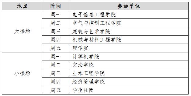 各学院、各学生组织要按照本方案规定的时间地点,组织学生参与晨读晨练活动。除了上述规定时间外,每周的其余时间各单位自行组织,不做强制要求。